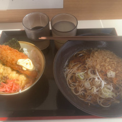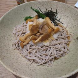 具はとんかつ、大根おろし、ほうれん草、別皿でわさびとネギ。 以前きしめんで食したことがありそれのそば版。 そばのコシとからりと揚がったとんかつ、そしてピリッとした 大根おろしが相まってとてもおいしかった。